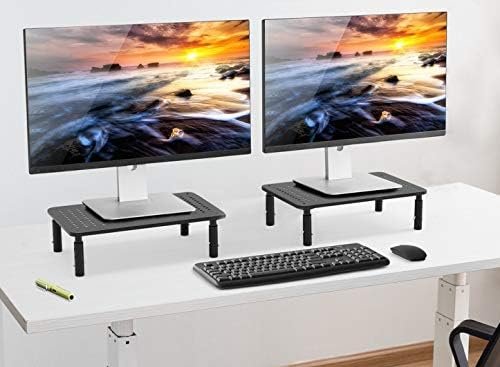 SLEEK, FASHIONABLE, ELEGANT DESIGN makes this monitor riser a very nice accessory for your desk and office. Make of durable black steel. It’s smooth and feels great with vented top surface. Holds up to 44 pounds including most monitors.