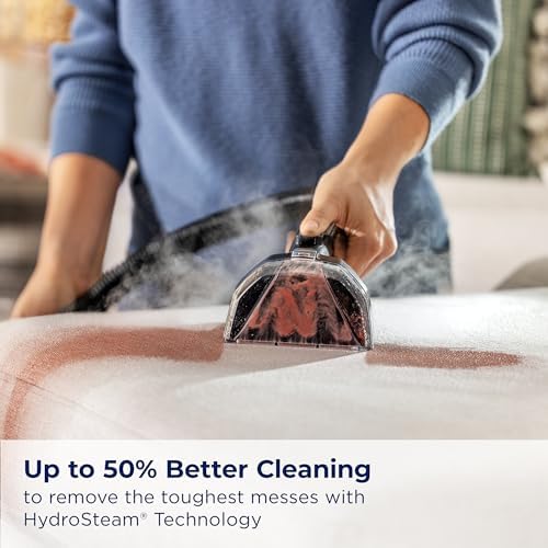 UP TO 50% BETTER CLEANING WITH HYDROSTEAM TECHNOLOGY. Steam, powerful suction and OXY formula remove set-in stains and tough, stuck-on, oily messes from carpet, upholstery and other surfaces.