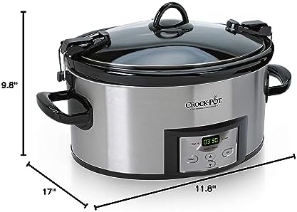 The Crock Pot Programmable Cook & Carry Slow Cooker with Digital Timer is made for portability. Its secure locking lid and rubber gasket create an airtight seal, helping to prevent spills on the road food stays inside, and you arrive at your destination without any worry or mess. Bring this portable slow cooker to potlucks, family gatherings, tailgating, parties and more. The digital panel allows you to customize your cooking time between 30 minutes and 20 hours, and set the temperature on High, Low, and and Warm. After cooking is complete, the slow cooker will automatically shift to Warm for up to 6 hours to help maintain food temperature and flavor. With dishwasher safe components, this is the perfect digital slow cooker just about anytime you need to transport food prepared at home. Recipes included. Weight: 16.18 Pounds,Cord length: 24 inch.