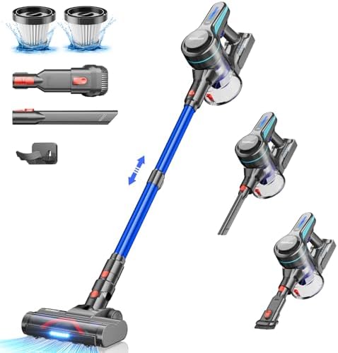 ✅[180° Rotatable Brush & LED Headlights] H18 Cordless Vacuum Flexible Floor Brush makes it easy to clean under furniture and in dead spots.The LED headlight illuminates every corner of your home to ensure you don’t miss any dirt and debris.