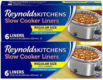 Make memorable meals with Reynolds Kitchens Slow Cooker Liners, and save time on cleanup. Grab these slow cooker bags for slow cooking without dealing with stubborn, stuck-on messes. Simply lift the slow cooker liner when the cooking is done and your slow cooker is clean in less than eight seconds—guaranteed! Each slow cooker bag measures 13 x 21 inches to fit 1- to 3-quart round and oval slow cookers, and is made with a BPA-free heat resistant (up to 400 degrees Fahrenheit) nylon-blend construction. Spend more time with your loved ones and less time in the kitchen with these FDA-compliant, food-safe Reynolds Kitchens Slow Cooker Liners.
