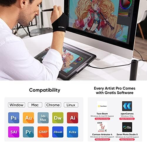 Drawing Display-❤Versatility and Compatibility❤ Supports Windows 10/8/7(32/64bit), Mac OS X 10.10 and higher. Compatible with Photoshop, Illustrator, SAI, CDR, GIMP, Krita, Medibang, Fire Alpaca, Blender 3D and more. Or register your XPPen Artist13.3 Pro drawing tablet on XPPen web to apply for an ArtRage 5, openCanvas and Cartoon Animator 4 Pipeline drawing program
